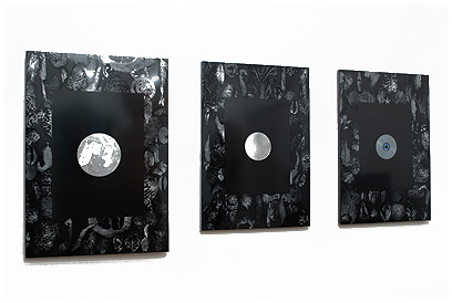 (左)「満月・アルミ」モノタイププリント,コラージュ 128.0×122.0(cm) 2007