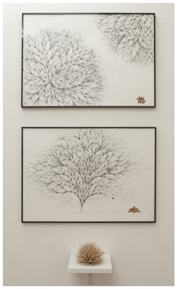 ケント紙、鉛筆、ペン、木材