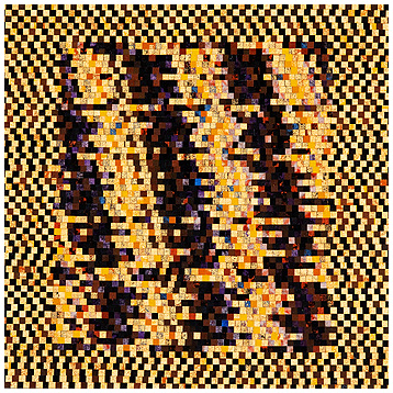 綿布,麻布,反応性染料,ろう染,布象嵌 25.0×25.0(cm) 2003